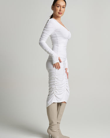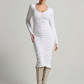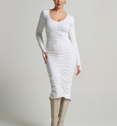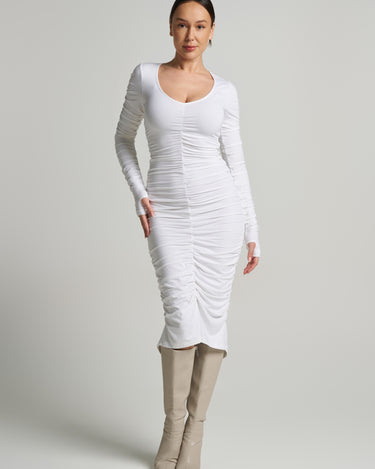 Viva Scoop Neck Ruched Dress (Vanilla)